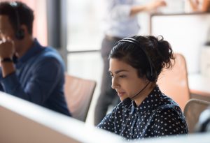 Focused,Indian,Female,Professional,Helpline,Call,Center,Agent,Operator,Telemarketer